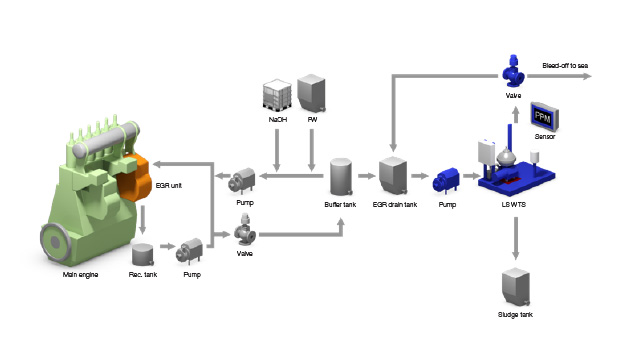 PureNOx LS is designed for use with EGR engines that operate on low-sulphur fuel. In the EGR process, water is used to remove soot particles from the exhaust gas that is recirculated into the engine. This creates a certain amount of condensate, called EGR bleed-off water, that must be cleaned before discharge in accordance with EGR guidelines from the MEPC307(73).