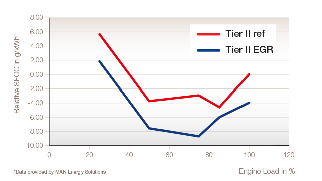 As well as supporting Tier III NOx compliance, PureNOx LS supports Eco EGR. Eco EGR is a fuel-saving engine mode in which EGR is performed using a smaller amount of exhaust gas (10–15%) during Tier II operation. For EGR engines with Eco EGR capability, the savings are considerable when running on low-sulphur fuels.